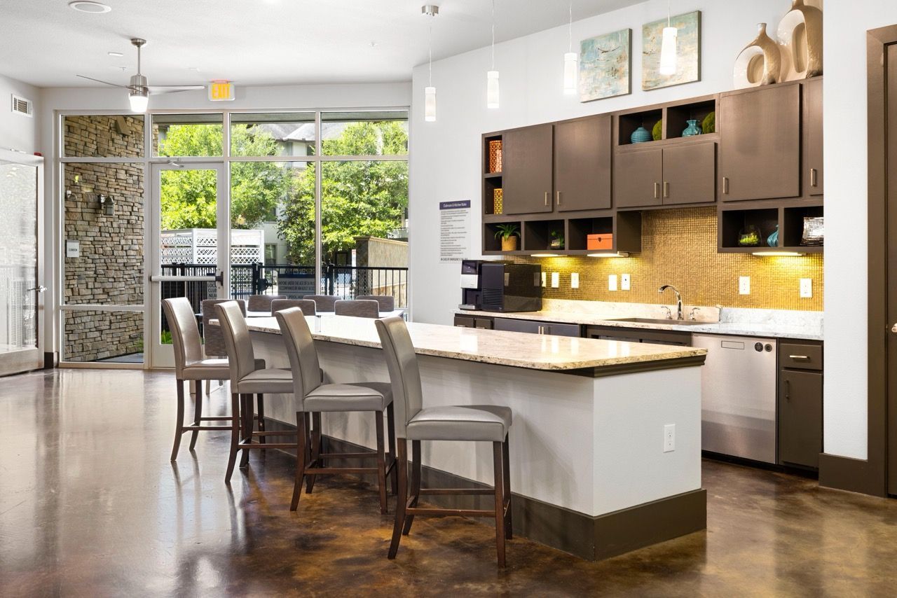 Wake up and savor a cup of coffee in your stunning chef-inspired kitchen. Amp up your day with an energizing workout in the fitness center – get your heart pumping on the cardio machines or do some slow-burn training in the yoga and TRX studio. Need to cool off? Our refreshing swimming pool features a tanning ledge and a large comfortable daybead to kick back and relax.